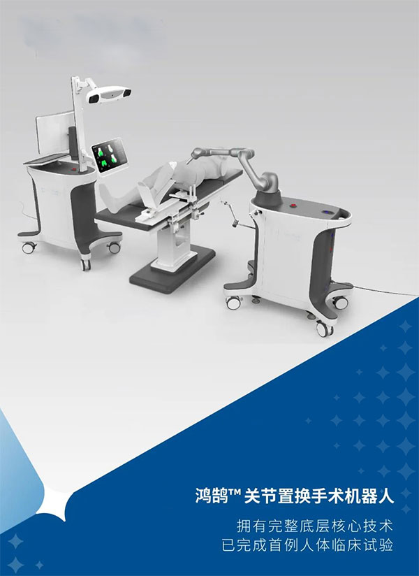 鴻鵠®關節(jié)置換手術機器人擁有完整底層核心技術,通過骨質的精確切除、假體的精準植入、人為誤差的校準和消除以及標準化的術后效果,為長久以來困擾臨床的問題提供了解決之道,2020年6月30日在上海交通大學醫(yī)學院附屬第九人民醫(yī)院完成首例人體臨床試驗。該產品已啟動美國食品藥品監(jiān)督管理局(FDA)的注冊審批申請,為開拓美國市場奠定條件。