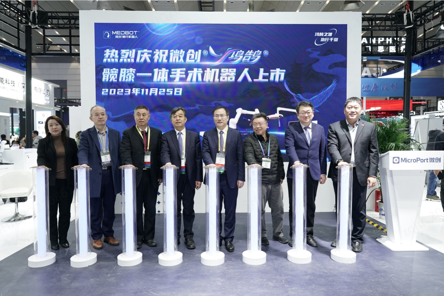 大會舉行期間,上海微創(chuàng)醫(yī)療機器人(集團)股份有限公司(簡稱“微創(chuàng)®機器人集團”)攜旗下蘇州微創(chuàng)暢行機器人有限公司研發(fā)的鴻鵠®骨科手術機器人(即“鴻鵠®髖膝一體手術機器人”)亮相并舉行上市發(fā)布會。