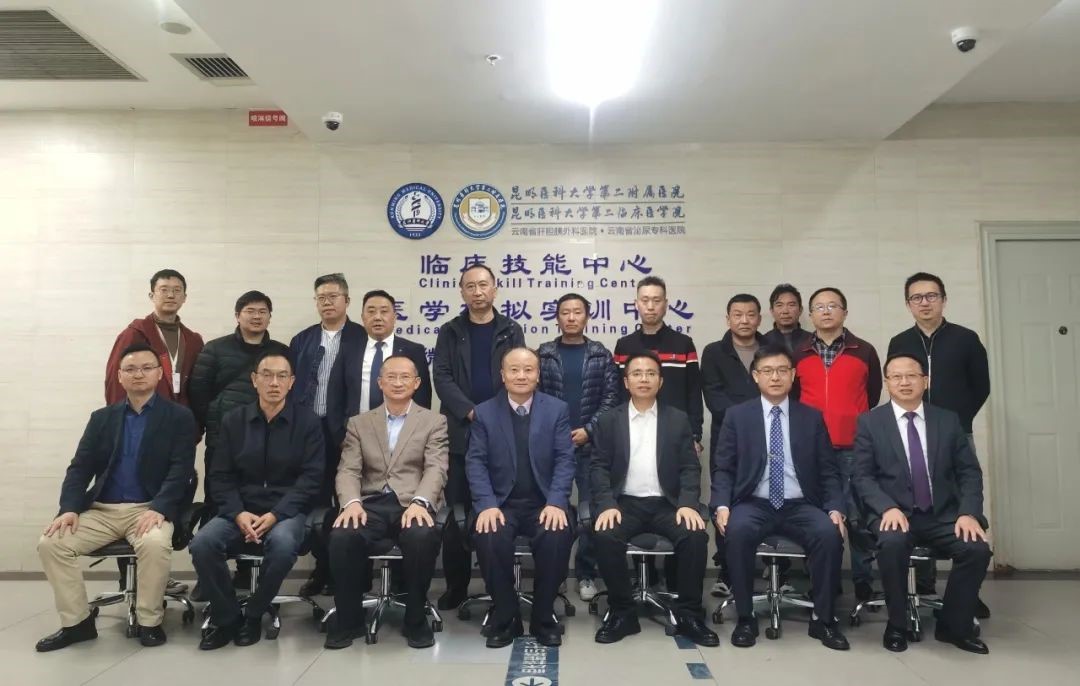昆醫(yī)大附二院黨委委員、副院長王迎松,云南省泌尿外科研究所所長、云南省泌尿系統(tǒng)疾病臨床醫(yī)學中心主任王劍松,昆醫(yī)大附二院泌尿外科王海峰教授、微創(chuàng)®機器人集團培訓部金振宇經理、云南省12位醫(yī)療機構泌尿外科科室主任、昆醫(yī)大附二院泌尿外科醫(yī)生及臨床技能培訓中心工作人員等參加揭牌儀式。王海峰教授主持揭牌儀式。