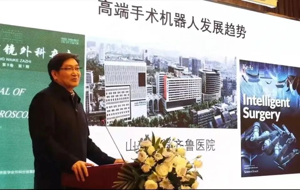 ▲齊魯醫(yī)院胡三元教授致辭并作《高端手術(shù)機器人發(fā)展趨勢》分享