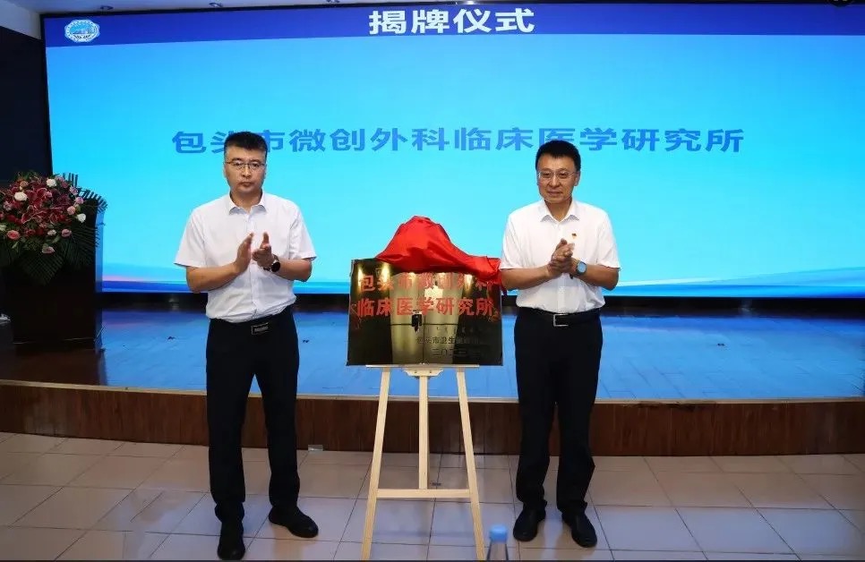 包頭市衛(wèi)生健康委黨組成員、副主任趙宏和包頭市中心醫(yī)院黨委書記楊志剛,共同為“包頭市微創(chuàng)外科臨床醫(yī)學(xué)研究所”揭牌。包頭市中心醫(yī)院黨委副書記、院長梁魯與上海微創(chuàng)醫(yī)療機器人(集團)股份有限公司華北區(qū)銷售經(jīng)理韓志超,為“微創(chuàng)手術(shù)機器人臨床應(yīng)用示范中心”、“5G遠程臨床培訓(xùn)教學(xué)中心”揭牌。