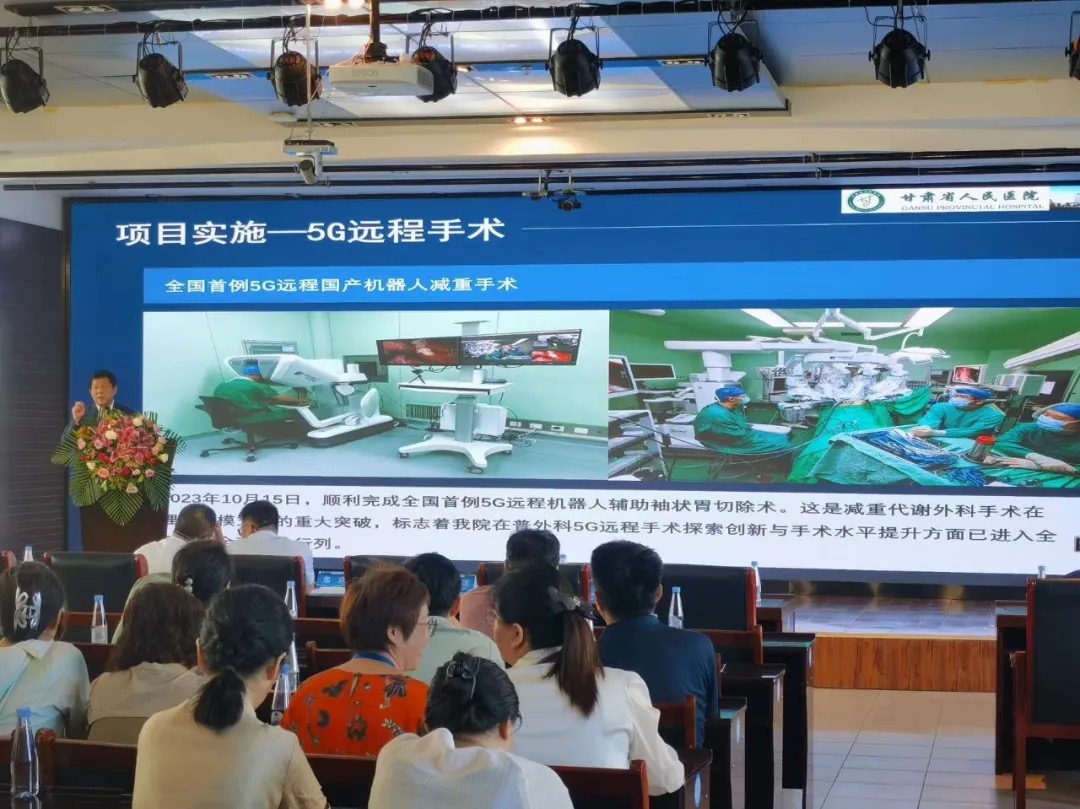 揭牌儀式后,甘肅省人民醫(yī)院普外科(胃腸外科)主任、機器人外科中心主任馬云濤教授以《遇見未來——5G遠程機器人手術(shù)的探索與實踐》為題,就5G遠程手術(shù)探索領(lǐng)域的成果與經(jīng)驗進行了精彩分享。