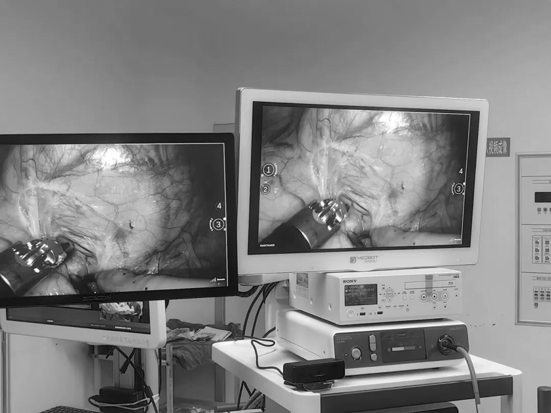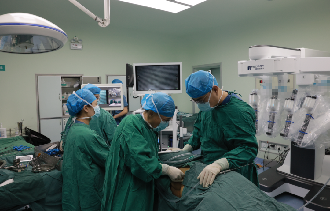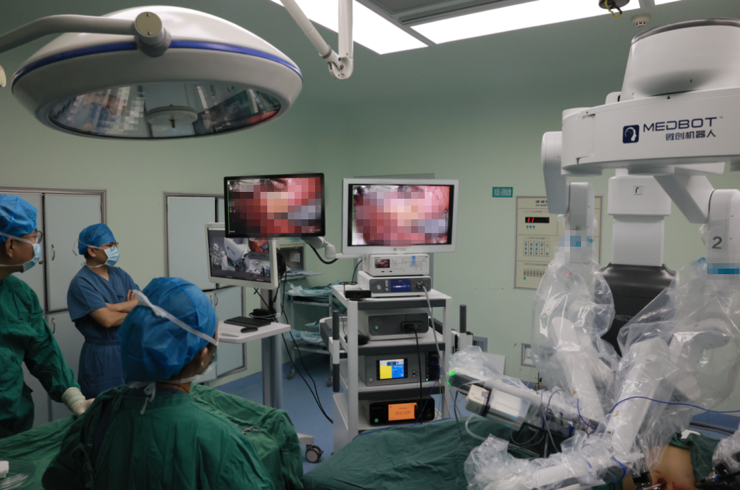 上午11時,手術(shù)正式開始。張大宏副院長主刀,王思齊主任和顧勇副主任帶領(lǐng)醫(yī)院泌尿外科團隊輔助,機器人輔助腹腔鏡下右腎盂輸尿管成形術(shù)用時2小時,術(shù)中出血僅10ml;機器人輔助腹腔鏡下右腎上腺腫瘤切除術(shù)手術(shù)時長1個半小時,術(shù)中出血約50ml。手術(shù)非常成功,目前兩位患者恢復良好。