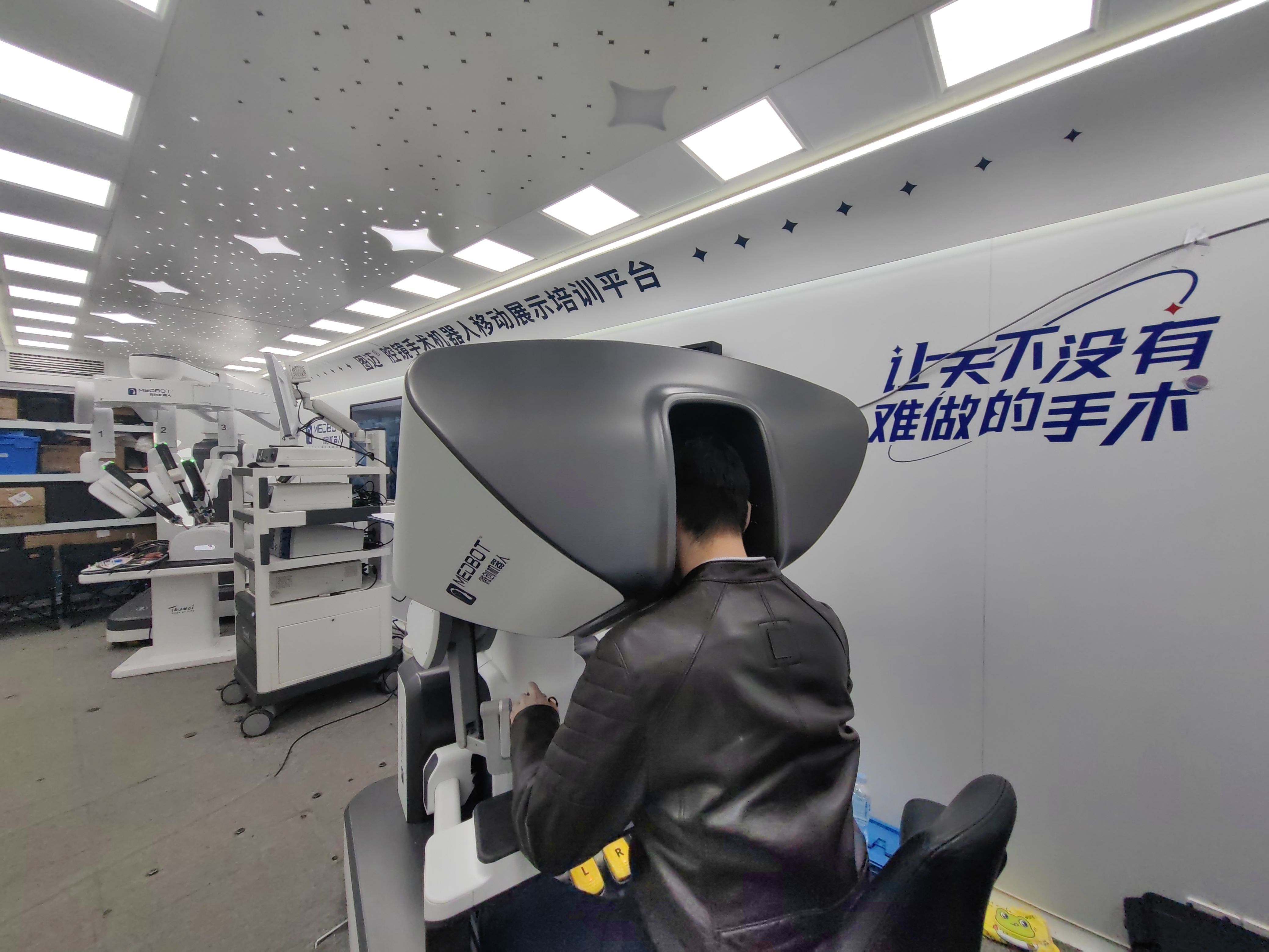 圖邁®車(chē)載移動(dòng)手術(shù)平臺(tái)是全球首款集“胸腹腔鏡手術(shù)系統(tǒng)”及“遠(yuǎn)程手術(shù)交互平臺(tái)”為一體的車(chē)載移動(dòng)手術(shù)平臺(tái),可用于產(chǎn)品展示,醫(yī)生培訓(xùn)、遠(yuǎn)程示教、遠(yuǎn)程手術(shù),具有精準(zhǔn)穩(wěn)定、部署靈活、超低延時(shí)、安全性強(qiáng)、易于使用特點(diǎn)。平臺(tái)功能設(shè)施完備,能夠提供腔鏡手術(shù)機(jī)器人培訓(xùn)、手術(shù)所需的能源、耗材與維護(hù)支持。