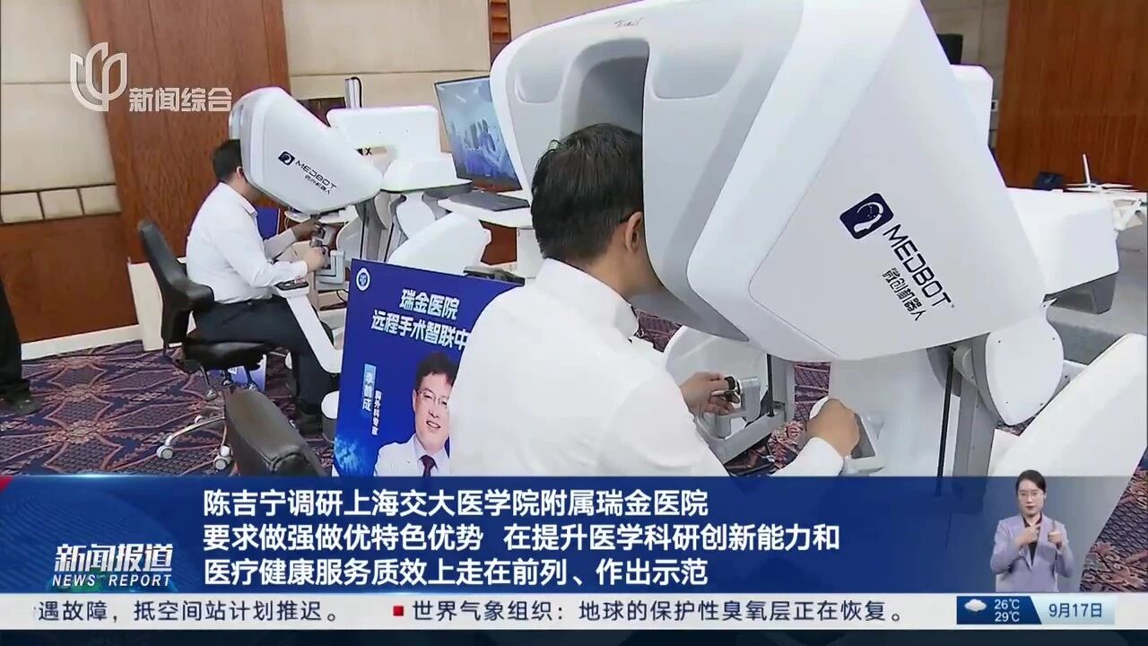 中國(guó),上海——9月17日,上海交通大學(xué)醫(yī)學(xué)院附屬瑞金醫(yī)院科技樓2樓報(bào)告廳內(nèi),三臺(tái)圖邁®手術(shù)機(jī)器人一字排開,同步連接到云南省迪慶藏族自治州人民醫(yī)院(簡(jiǎn)稱:迪慶州人民醫(yī)院)、甘肅省酒泉市人民醫(yī)院(簡(jiǎn)稱:酒泉市人民醫(yī)院)和瑞金醫(yī)院嘉定院區(qū),輔助趙任教授、李鶴成教授、劉坤教授分別完成普外科、胸外科高難度遠(yuǎn)程手術(shù)。正在瑞金醫(yī)院調(diào)研的市委書記陳吉寧現(xiàn)場(chǎng)觀摩本次遠(yuǎn)程手術(shù),了解醫(yī)院在遠(yuǎn)程醫(yī)療等方面的創(chuàng)新探索和階段性進(jìn)展,并叮囑醫(yī)院和相關(guān)部門負(fù)責(zé)同志要探索和搶占醫(yī)療最前沿,更好滿足人民群眾健康新需求。