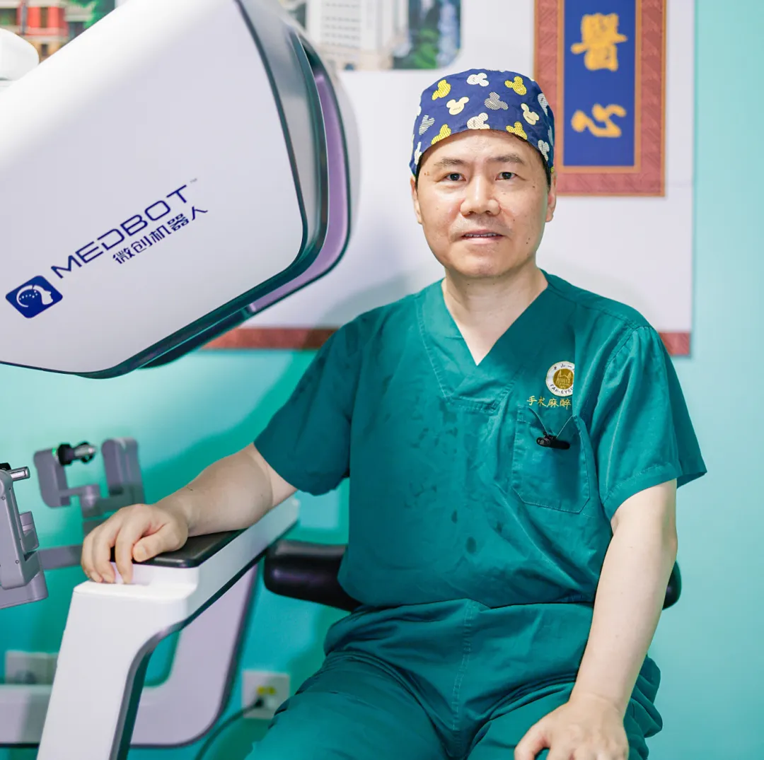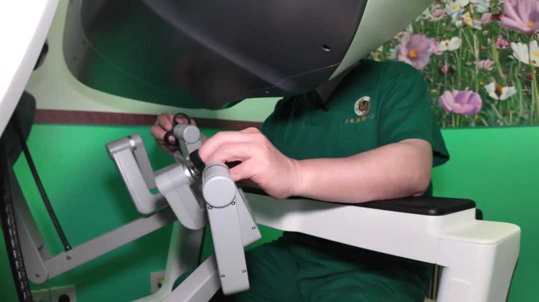 ▲殷曉煜教授為患者實(shí)施遠(yuǎn)程機(jī)器人手術(shù)